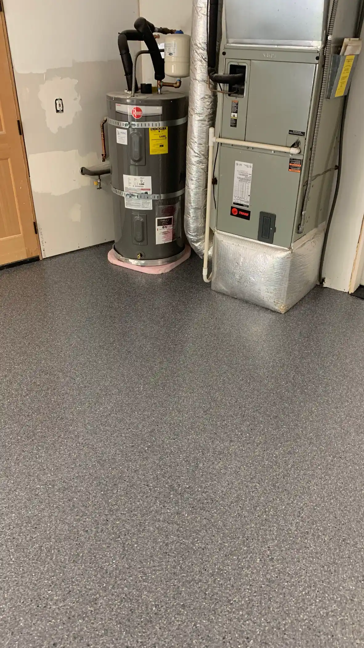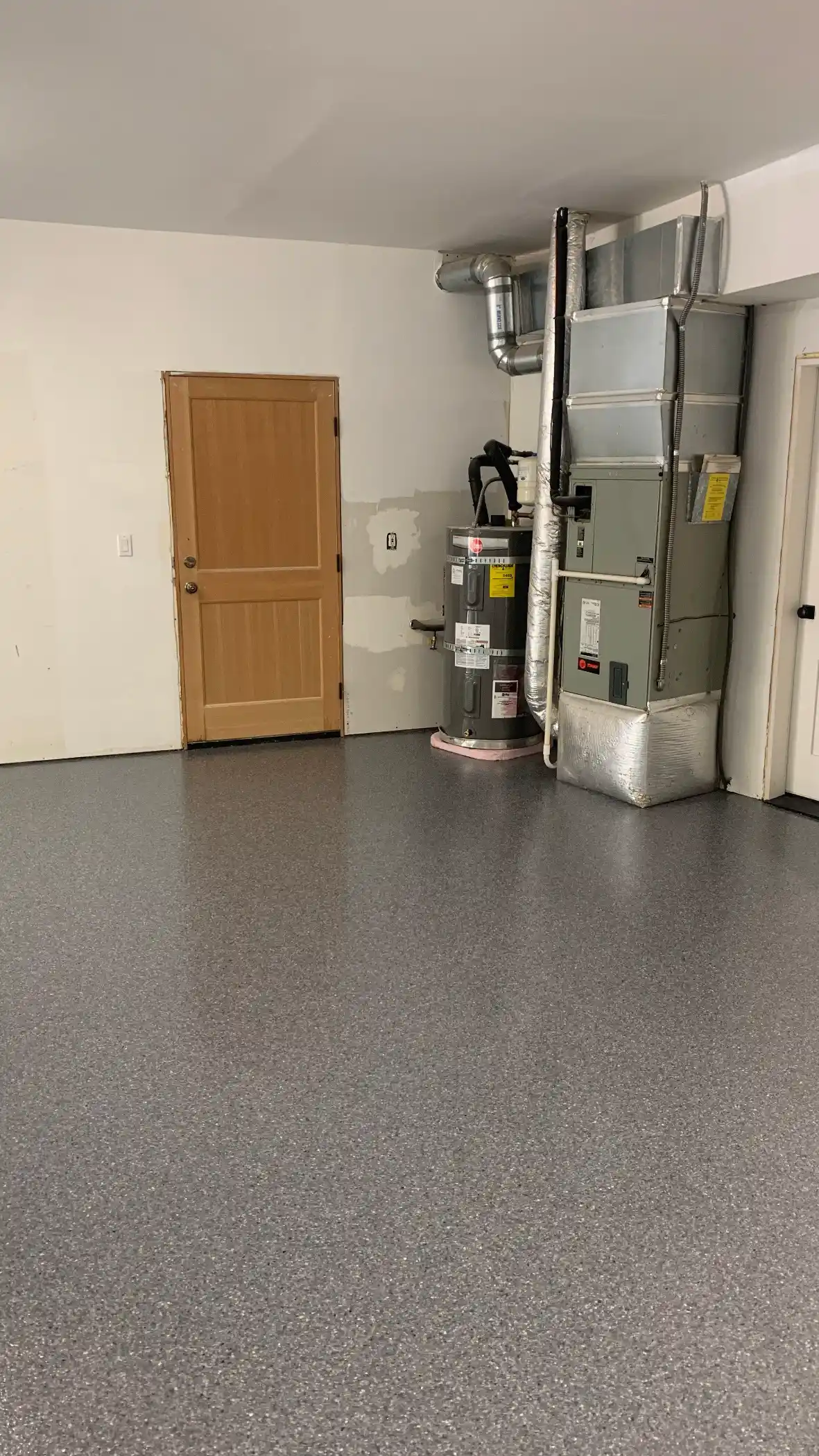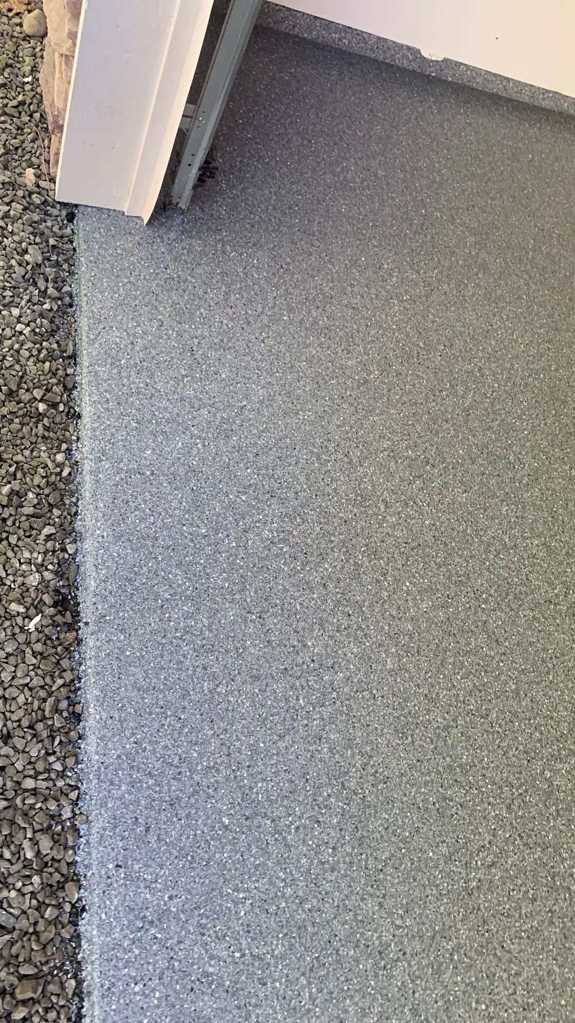 The installation process for this garage followed proper procedures that separate lasting installations from premature failures. The concrete got diamond ground to create the correct surface profile. The threshold area got proper attention since that's where weather exposure happens. The flake broadcast created substantial coverage for texture and appearance.